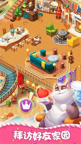 homescapes是一款基于趣味消除和卡通风格的休闲游戏,可以用中文翻译成梦境,保护你自己的庄园,交换和匹配地图块以修复匹配的房间,获得更多的家居材料,并通过消除操作自己的家。