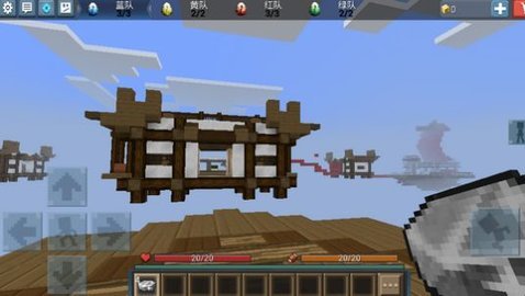 2、使用手持武器和积木在中央岛屿上收集更多的资源。