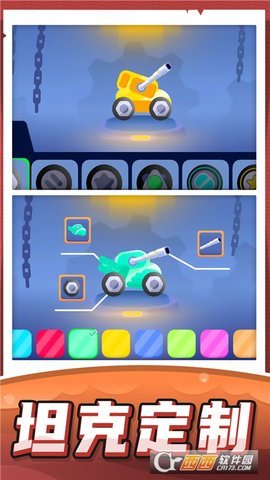 1、定制你自己的坦克,每个部分都可以自由选择,快速提高各种性能,以帮助你在游戏中获得优势。