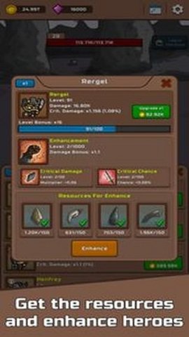 1、召唤20个+战士和英雄,为你战斗怪物和老板,即使你不点击。