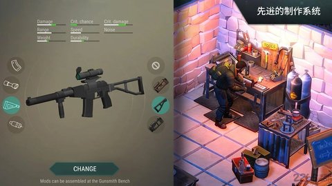 2、你是军队的一部分,挑战不同的对手,用武器和弹药装备自己,为战争做准备,