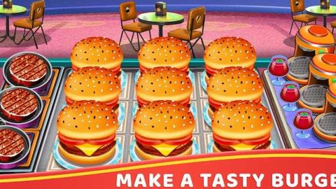 4、游戏非常简单,让你在闲暇时间建立一个非常汉堡餐厅,然后制作美味的汉堡。