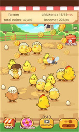 3、本游戏具有经典的商业模拟游戏玩法,玩家可以在游戏中享受养鸡的乐趣,适合喜欢卡通风格游戏的玩家。