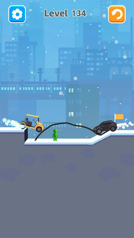 2、这一关卡的难度将快速提升,你需要制作更复杂的桥梁让所有汽车通过,所以要快速思考。