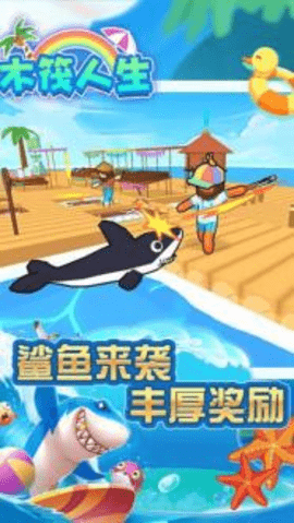 4、小心鲨鱼的攻击,吃掉并攻击你的木筏子!!