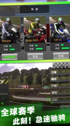 1、您可以在中国不同城市进行摩托车比赛,具有超强的替代感。