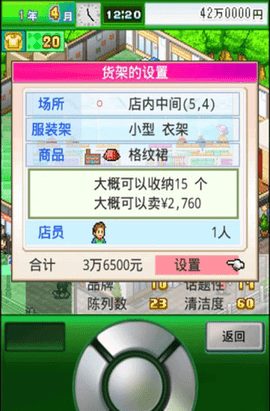 时尚洋品店是一款非常有趣的模拟手机游戏。这个游戏充满了像素风格,但它很精致。微妙的颜色匹配使图片非常新鲜。属于开罗游戏开发,是十分经典的游戏之一喜欢就来下载游玩吧!
