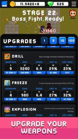 2、与无尽的敌人战斗,同时升级反弹,但致命的武器。