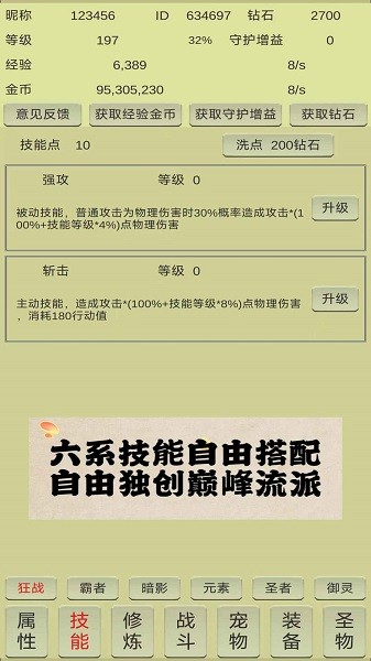 1.免费升级属性和添加积分,增长路径由您自己决定。