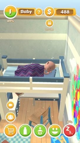 这一次,婴儿的房间里摆满了玩具、立方体和许多有趣的东西。你可以对你刚出生的宝宝做一些常见的事情,比如喂他,换尿布,给他起名字,和他玩耍,试图让他走路,最后把他放在床上。