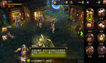 3、点击右边的箭头打开菜单,点击菜单中的包裹、公会、排行榜、技能、祈祷等进入;