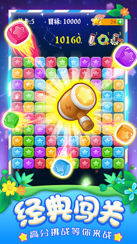 消灭星星全新版2022在消除方块的核心基础上,加入了全新的游戏模式和玩法,玩起来它会给你带来更多的俏丽和乐趣,简单有趣容易上手,你还可以和全球的激情玩家pk,画风清新可爱,用最精致的画面会给你带来最好的视觉享受。游戏规则很简单:只要点击两个或多个相同颜色的方块就可以消除。游戏没有时间限制,每一阶段都有一个目标,完成后就可以进入下一阶段。