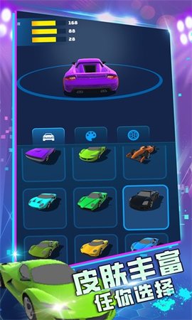 1.游《弯道极速超车》戏中的每一辆车都很酷。您可以通过参加比赛获得并解锁奖励。