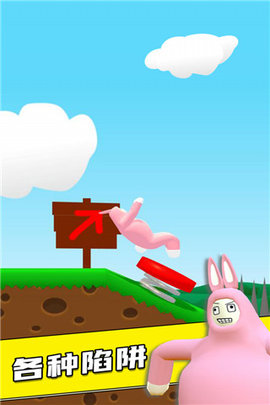 3、超级疯狂兔子人的玩法很简单,但操作却很困难。我们的兔子动作有点慢,感觉是肌肉无力。