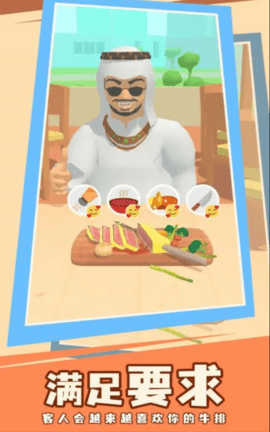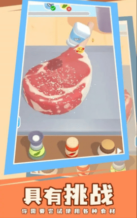 1、你将扮演厨师的角色,为不同的顾客制作牛排。有很多调味料供你使用,成为最好的厨师。