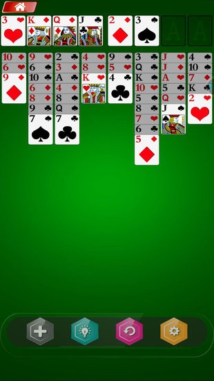 1.蜘蛛纸牌2有三种难度选择,单色、双色和四色。