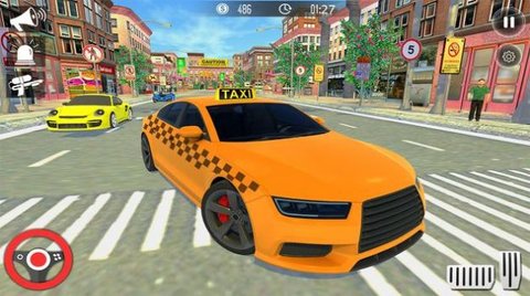 1.可通过屏幕底部的方向盘、制动器和加速器踏板轻松控制计程车。