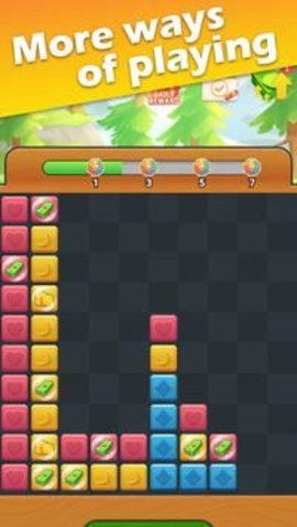 2、掉落:3个或更多相同颜色的方块可以通过堆叠来消除。