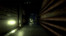4、第3关:3关的场景类似于地下停车场。玩家的第一个任务是关闭柱子周围的阀门,防止它们被毒气毒害。打开门,快跑,用按钮走到角落,再按下按钮将怪物锁在外面,走到走廊尽头,到电梯后面领取密码;