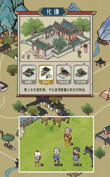 2.乞讨:下山乞讨时,有机会获得丰富的道具和相关事件,从而更好地建造寺庙。