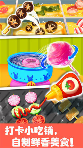 3、去食品小吃店:宝宝玩腻了吗?来DIY食品吧!有许多口味可以选择:芒果、巧克力、草莓、猕猴桃。让我们试着用我们的小手做金色芒果爆米花和粉色草莓兔棉糖吧!(提高动手能力)
