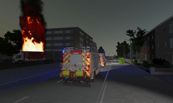 2.真实的消防救援任务,熊熊烈火映红天空,水枪的喷射不断吞没危险火焰。