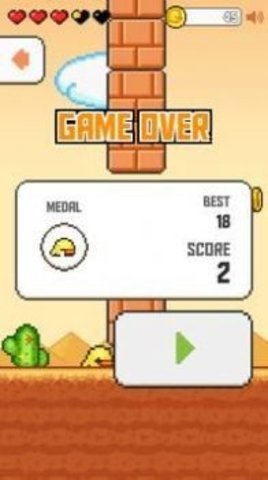 2、控制你的小鸟向前飞行,机灵灵活地避开各种障碍,让我们走得更精彩。