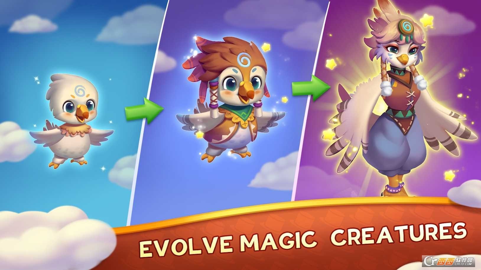 2、从魔法水晶中解放自己,通过融合和匹配一切——树木,建筑,神话龙的宝藏,神奇的花朵,甚至仙女,结交更多的朋友和家人!