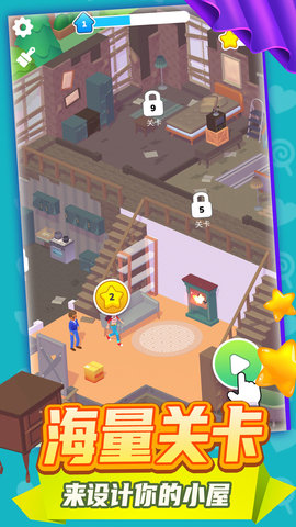 2、整理大师很多关卡等着你去体验,你会在房子里遇到很多问题,赶紧修复升级吧。