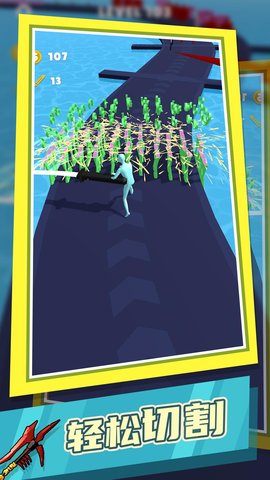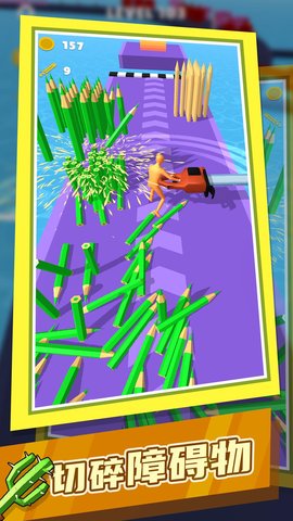 1、角色用武器砍路上的障碍物,面对不同的物体在规定的时间内不断的切割。