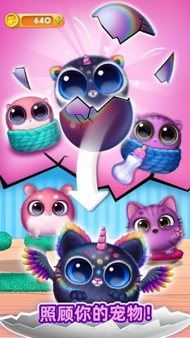 1、我的可爱宠物屋有不同类型的宠物,如熊猫宠物、狮子宠物、独角兽宠物等15种宠物藏在不同的鸡蛋中,等待玩家选择和孵化。