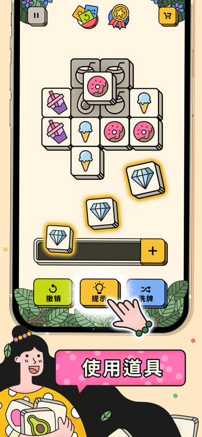3.选择三个相同的元素来消除,并消除每个游戏级别中的所有元素。