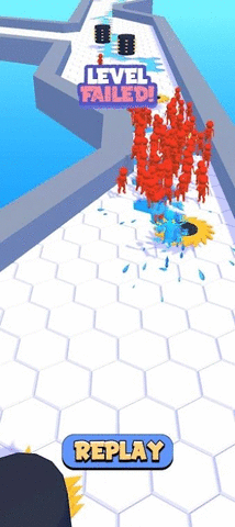 2、下降人群中左右滑动屏幕来改变移动位置,避开敌人和机制也是不错的选择。