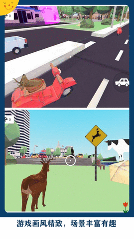 鹿哥城市侠盗模拟是一款非常有趣的模拟游戏。在这款游戏中,玩家需要扮演一只鹿,开始你在城市中的冒险。整体游戏内容非常丰富,有很多精彩的玩法可以自由体验,让你体验到最真实的动物玩法。