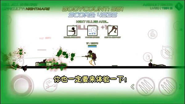 迷你火柴人是一款射击冒险挑战游戏。玩家会在游戏中看到一些熟悉的对手,控制对手执行一系列冒险挑战任务。玩家将参加各种战争,与一群比赛人员开始射击,并使用道具和武器摧毁所有敌人来完成挑战。