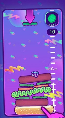 2、你可以自由地组合和堆放不同的食材来制作汉堡包,然后堆得越来越高。