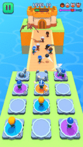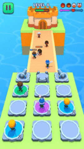超级合并战争是一款休闲战略战争游戏。在游戏中你的敌人会不断地攻击,你需要很好地防御。我们可以拖着同一级别的士兵来综合高级士兵来攻击敌人,或者让奴隶操作炮兵来提供炮兵支援。