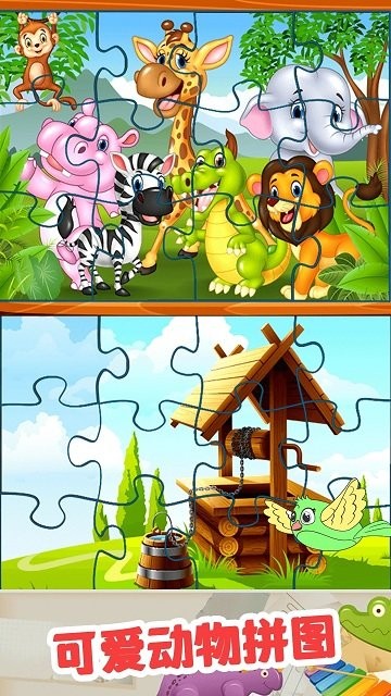 5.拼图:各种益智材料和场景,包括水下世界、宇宙星空、动物园和游乐园,都是简单、中等和困难的,可以在游戏中启发宝宝的智力,让他在突破益智的过程中更加勇敢。