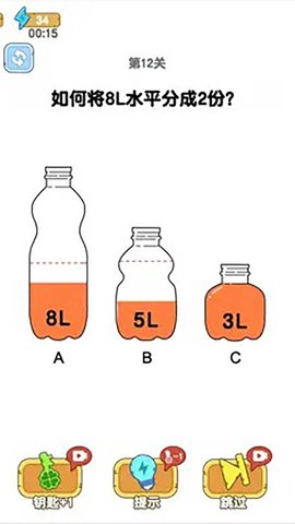 3、你的任务是装满瓶子,但这是困难的,需要你不断尝试。