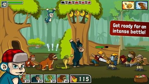2、森林防御战猴子传奇游戏每种动物都有不同的能力。升级他们以获得更强大的技能和能力。