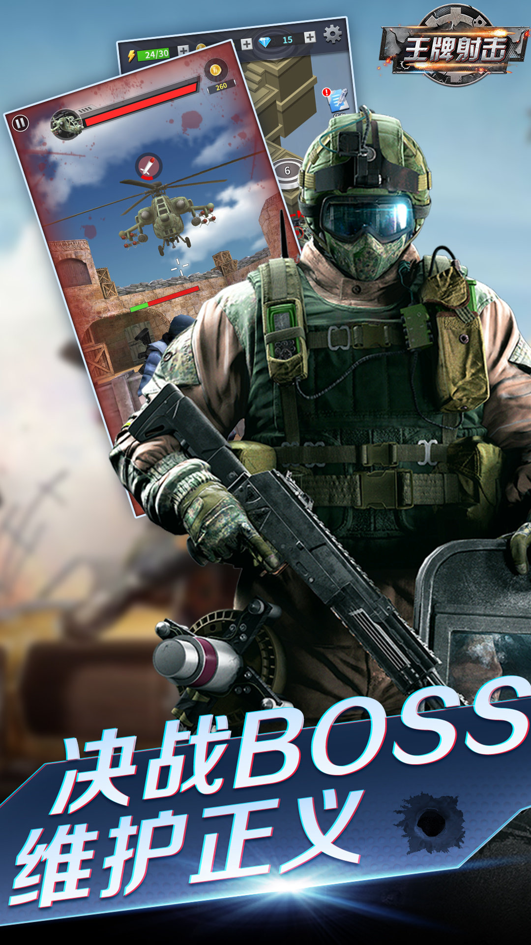 王牌射击是一款射击游戏,在这里大家就是一个特种兵。你需要做的就是不断的完成你的任务,这个过程是十分刺激的。在王牌射击中你的一举一动都将直接影响着战争的走向。喜欢的用户不要错过了。在这里感受一下游戏的魅力吧。