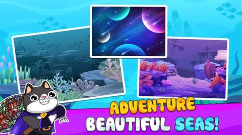 2、在喵喵抓鱼中,你将潜到海底,不断地钓鱼,你可以在这里尝试许多挑战。
