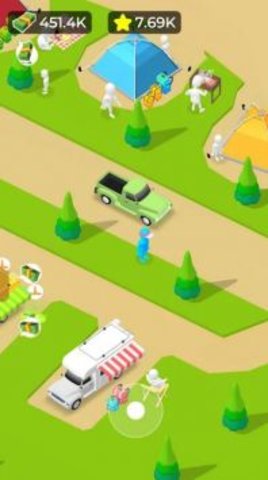1、放置模拟商务游戏,选择合适的露营地点和放置各种设施。