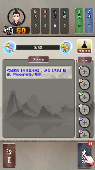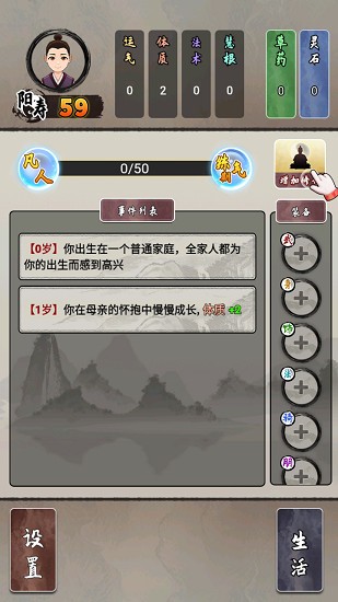 1.修仙生活录免广告版是一款小游戏来放置秀仙,并在游戏开始时选择您的产地,这很舒服;
