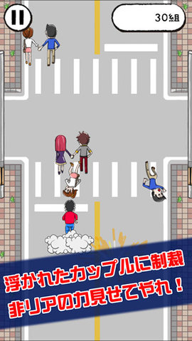 4、在游戏中,玩家需要按住屏幕并滑动手指来控制角色的移动。如果他们碰见了一对夫妇,他们需要在他们之间穿梭。如果他们只击中一个人,那将是一次失败。