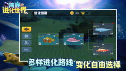 1海底进化世界游戏游戏游戏简单易行,这张地图显示了有许多鱼类的深海。