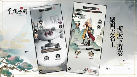 3、不休江湖手游武术种类繁多,近100种乐器,100多个不同的场景。除了一些常规属性外,人物还具有门派、声誉、忠诚价值、异性价值等。