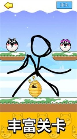2、在游戏关卡中有许多蜜蜂会回来攻击狗的头部。玩家的任务是画线保护狗的头。