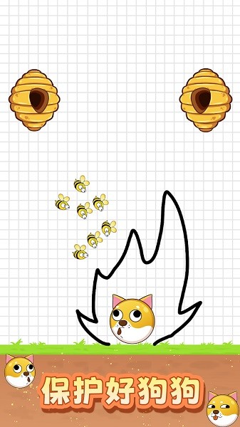 救救小可爱。这只可爱的狗有麻烦了。它遇到了一堆蜂箱。蜜蜂开始对狗构成威胁。在游戏中,玩家需要通过画线来保护狗,防止狗被蜜蜂攻击。