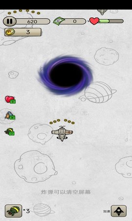 3、幽灵飞机的挑战太多了,控制各种弹幕道具和疯狂射击飞机。